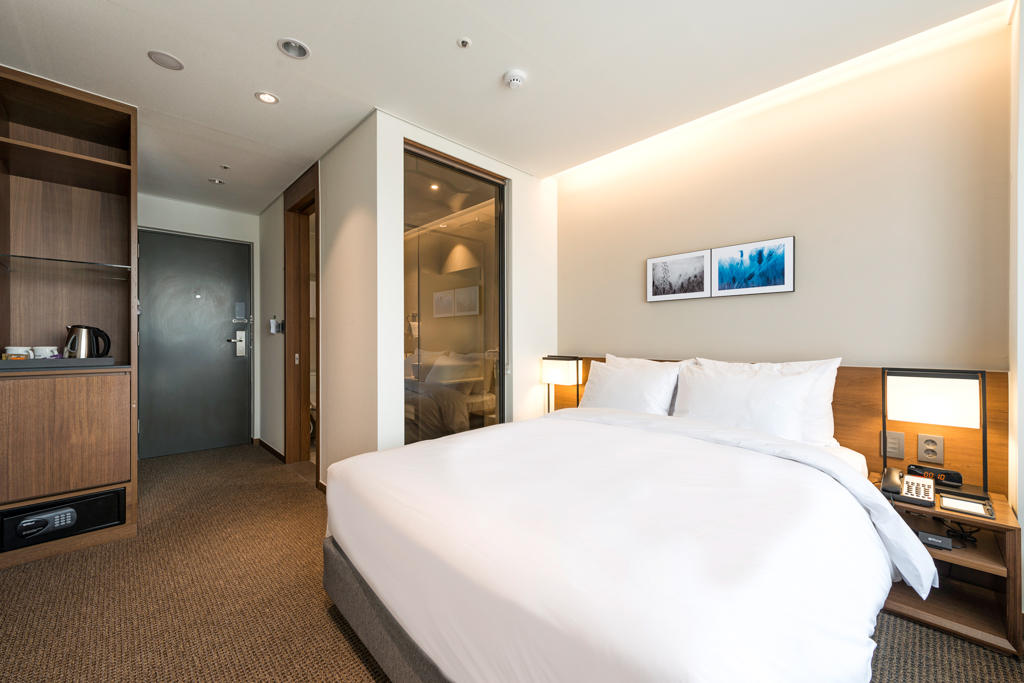 호텔의 30층에는 환상적인 전망을 자랑하는 스카이 로비가 있으며, 다양한 식사를 즐길 수 있는 2개의 레스토랑도 마련되어 있습니다. 객실은 우아한 목재 장식으로 꾸며져 있으며 에어컨이 완비된 객실에서는 부산 시내와 부산 요트 경기장의 멋진 전망을 감상하실 수 있습니다.
