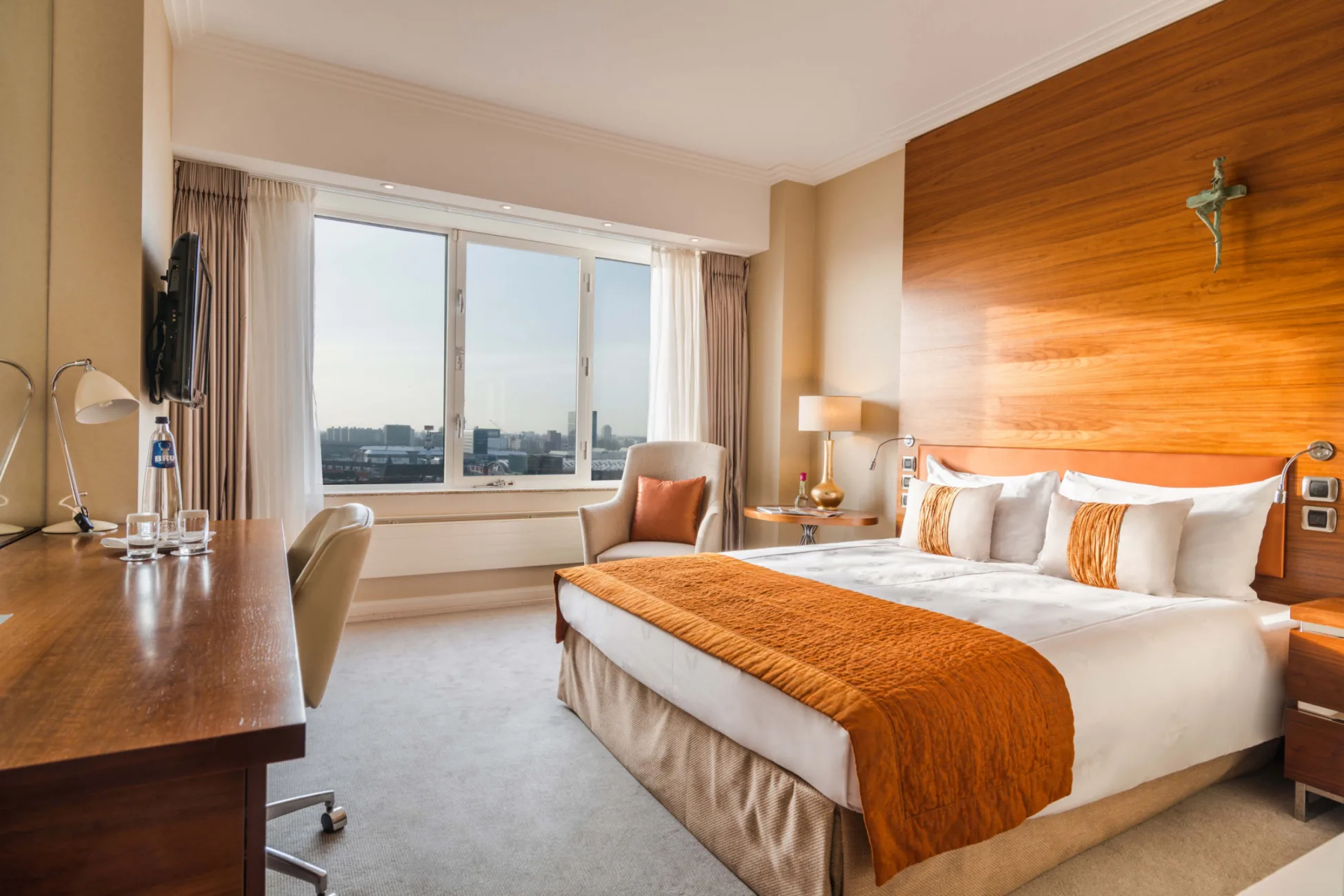 300개의 넓은 객실과 스위트는 모두 이스트본 침대, 별도의 욕조, 레인 샤워기, 대형 책상과 조절 가능한 가죽 의자를 갖추고 있습니다. 호텔 전역에는 무료 고속 Wi-Fi가 완비되어 있습니다.