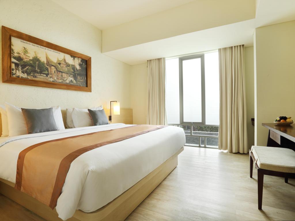 24시간 프런트 데스크에는 수하물 보관소와 안전 금고가 마련되어 있으며 구내 세탁 시설, 렌터카 서비스 및 탁아 서비스를 이용하셔도 좋습니다. 구내 레스토랑에서는 인도네시아와 세계 각국의 요리를 즐길 수 있으며 각 객실은 싱그러운 느낌을 자아내는 녹색 계열로 꾸며져 있습니다.