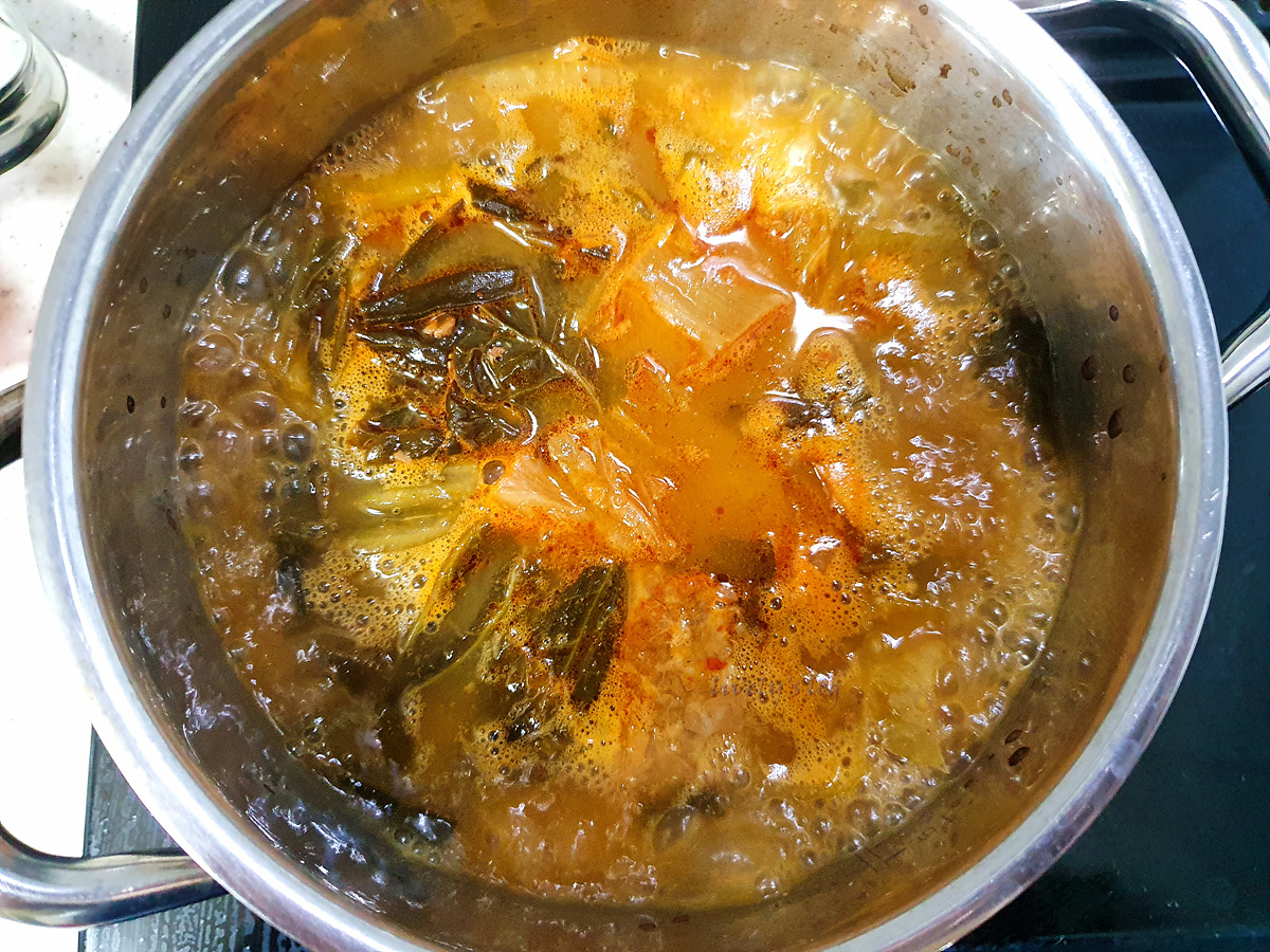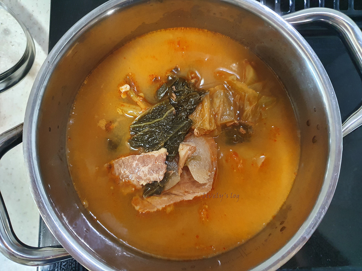 저는 그리 크지 않은 냄비에 부어서 끓였습니다. 생각보다 내용물이 좋아 보입니다.