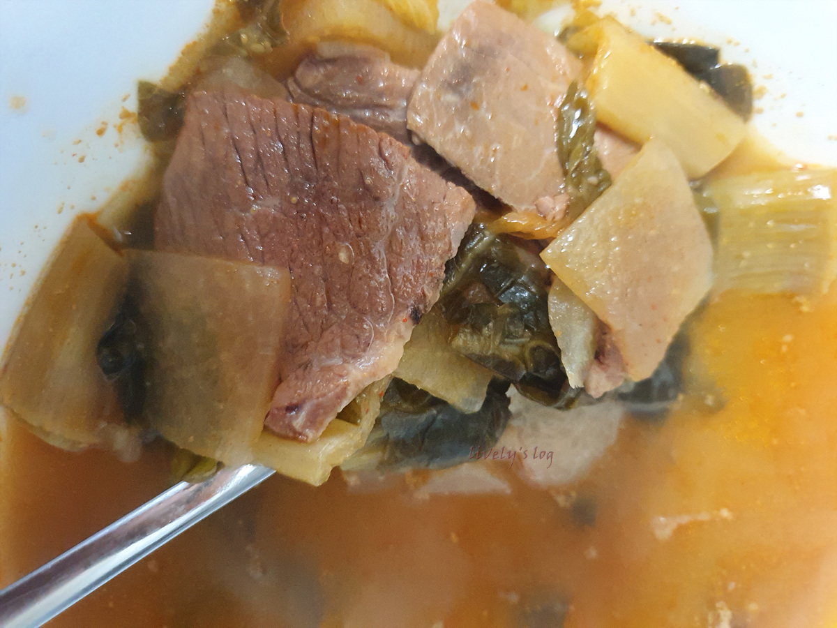 큼직큼직한 고기와 대파,,, 뜨끈끄끈하게 끓여서 빨리 밥 먹고 싶은 마음뿐입니다.