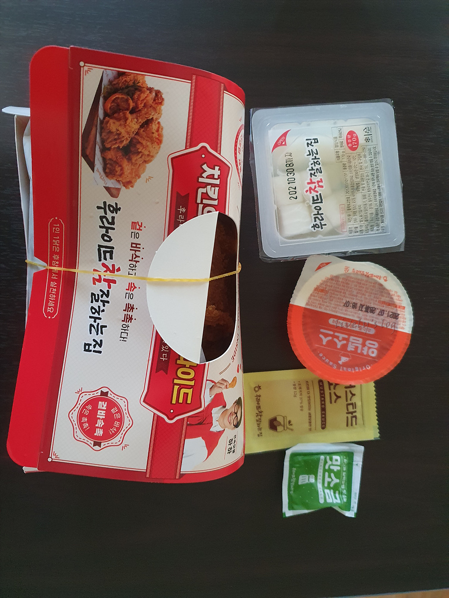 후라이드참잘하는집은 가격도 저렴하고 맛도 훌륭하지만 양이 많다고 느껴지지는 않을수도 있어서 오늘은 떡볶이랑 같이해서 먹었습니다.