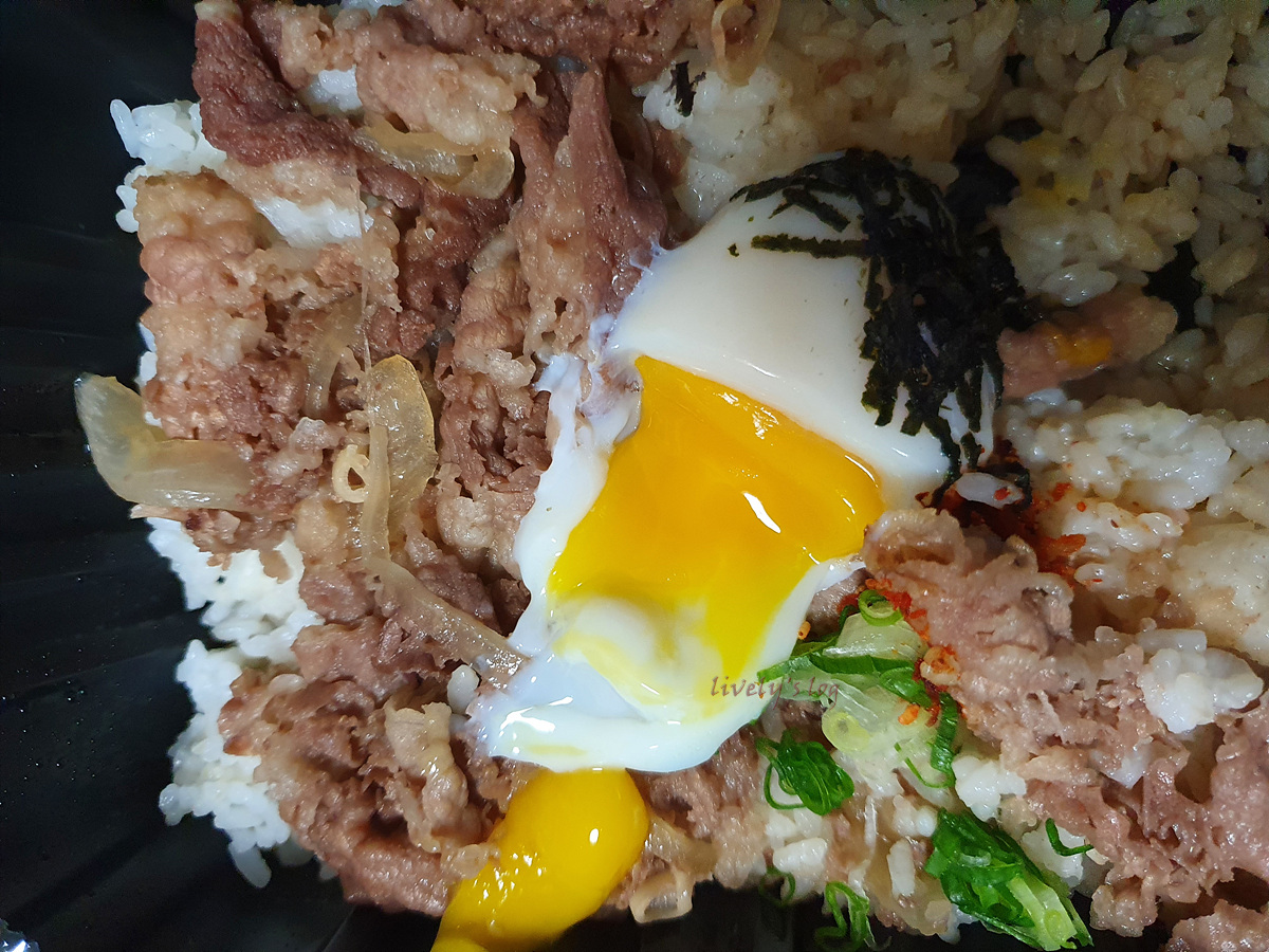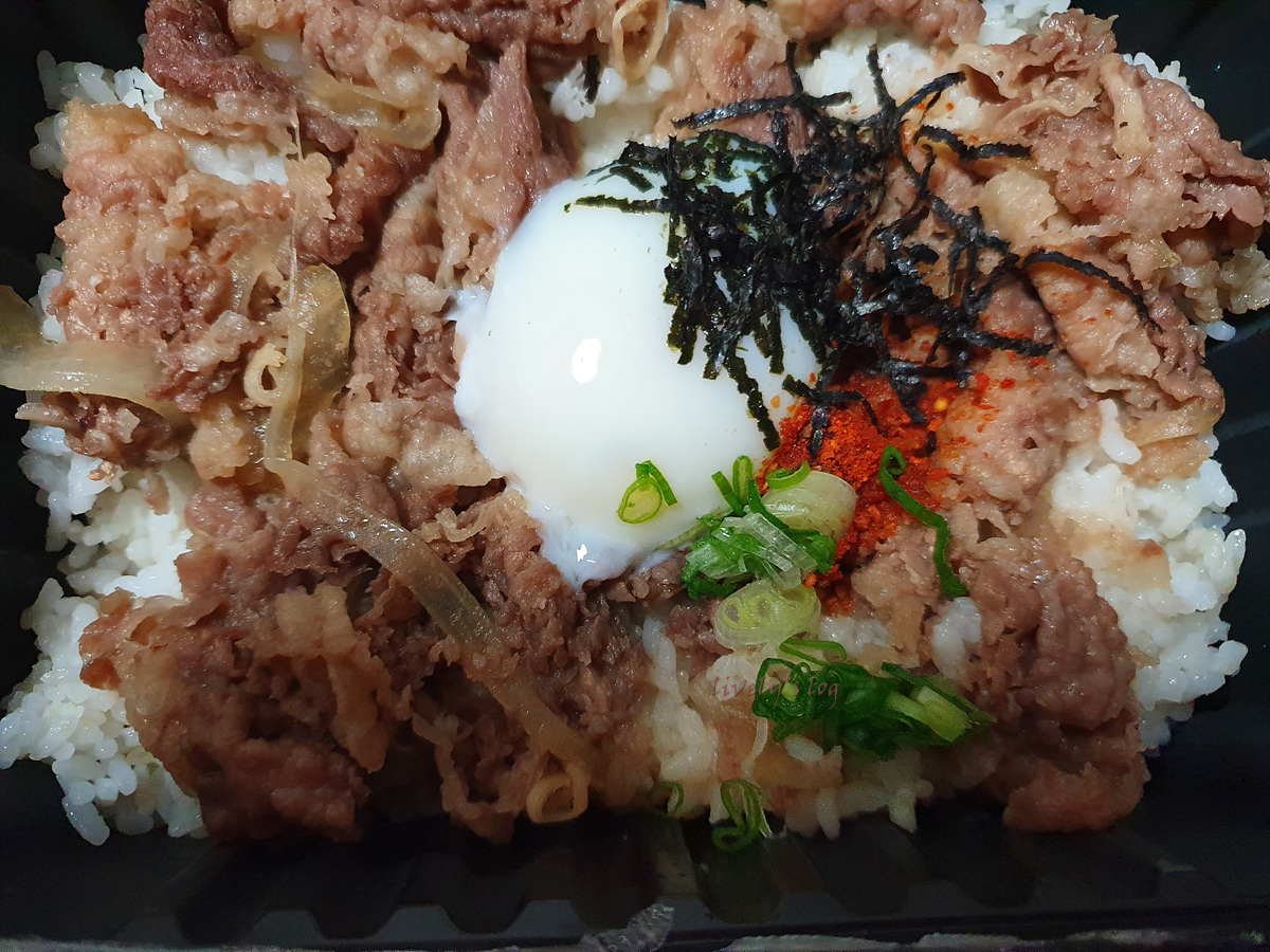 규동을 먼저 열었습니다. 계란 ,파, 김, 시찌미(?)가 있는데 그냥 봐도 먹음직스러워 보였습니다.