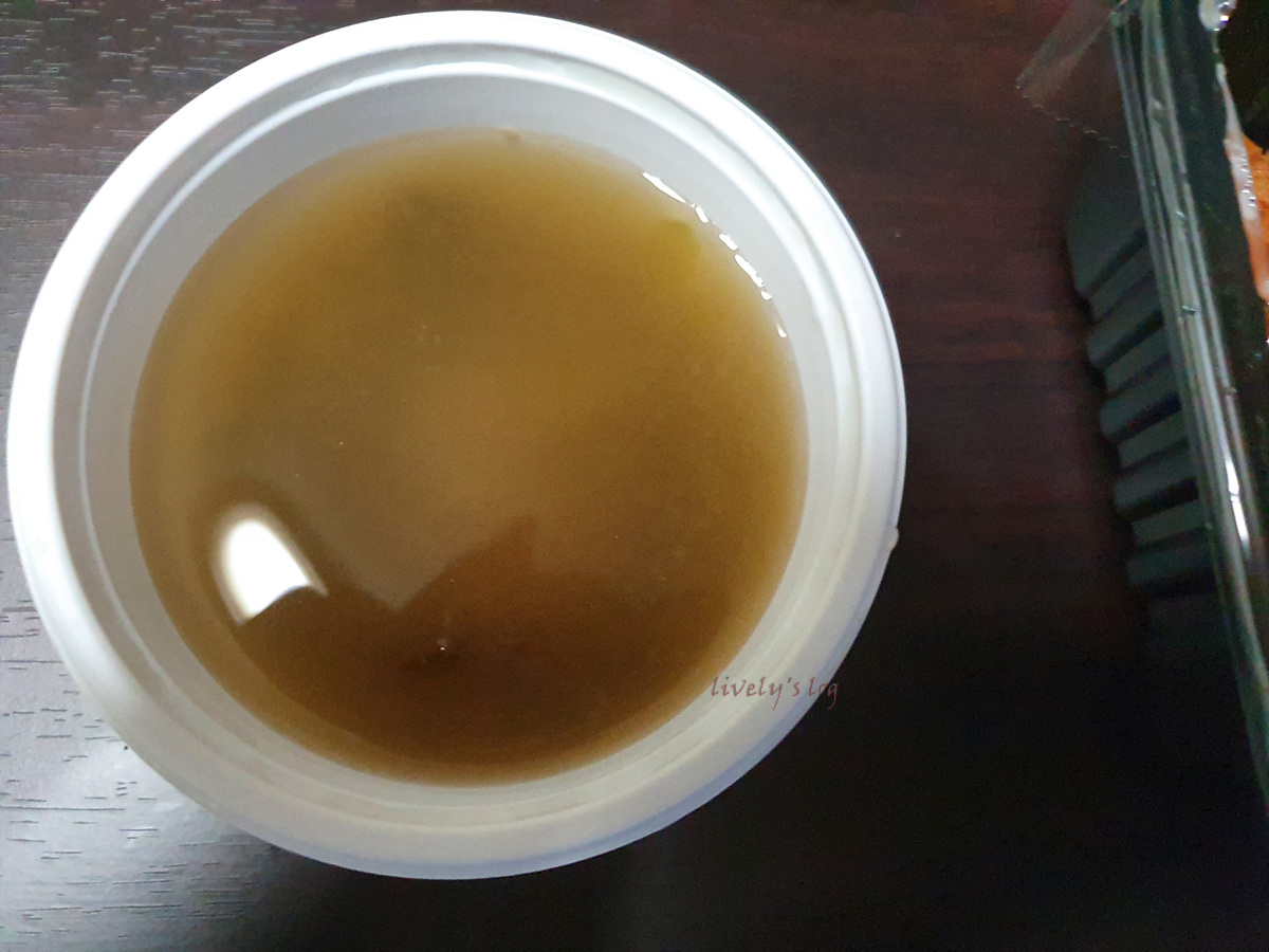 셀프바에서 가져온 장국인데 건새우, 미역이 있었는데 깔끔한 맛에 음식이랑 잘 어울렸습니다.