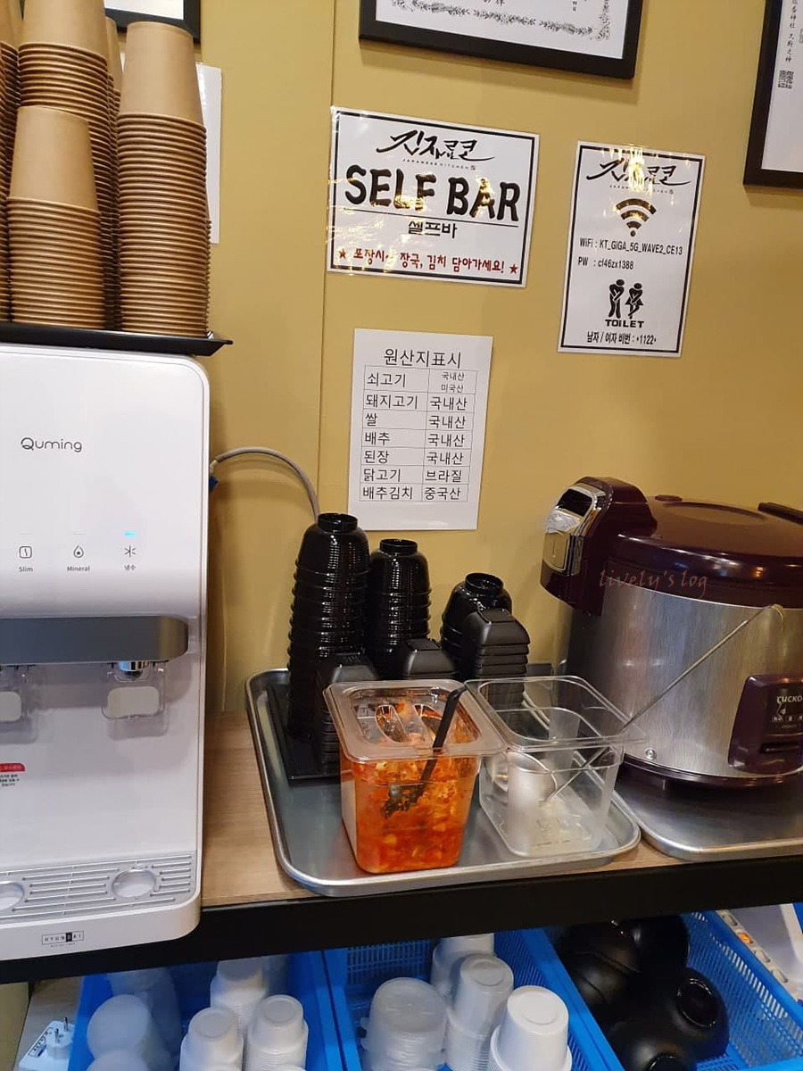 셀프바가 깔끔하게 잘 되어 있습니다. 음식이 만들어 지는동안 셀프바를 이용하여 장국만 포장했습니다.
